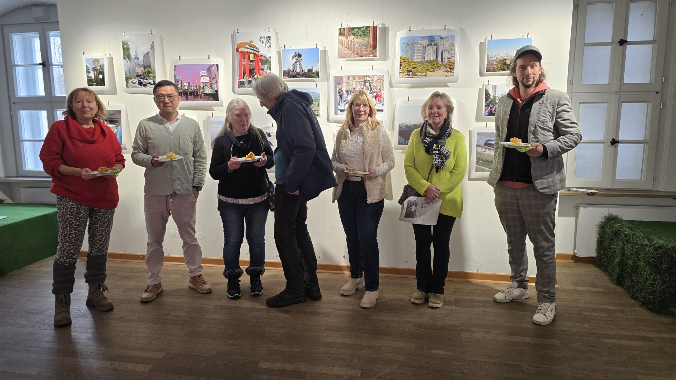 Mit einer persönlichen Führung des Künstlers Lei Wang fand am Sonntag, 4. Januar 2026, die Ausstellung „Was uns umtreibt“ ihren Abschluss. In kleinem Kreis bot sich den anwesenden Mitgliedern die Gelegenheit, die Fotografien und Interviews in ruhiger Atmosphäre zu betrachten. Lei Wang berichtete aus erster Hand von den Begegnungen mit den porträtierten Menschen und den Fragestellungen, die ihn zu dieser Ausstellung bewegt haben. Der direkte Austausch ermöglichte persönliche Einblicke und eröffnete neue Perspektiven auf die gezeigten Werke. Abgerundet wurde der Nachmittag durch den mitgebrachtem Kuchen des Künstlers, der den Abschluss der Ausstellung in besonders persönlicher und herzlicher Atmosphäre ausklingen ließ.